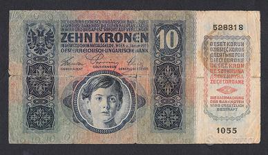 Banconota 10 corone austria-ungheria, occupazione della Romania durante la prima guerra mondiale (1917-1918), con strappi in conservazione come da foto.