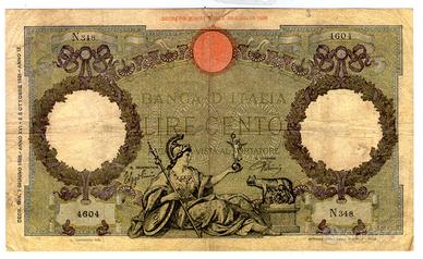 Attenzione: si tratta di una banconota non testata e non periziata, quindi non sono in grado e non ho la facoltà di stabilire l' autenticità, quindi svendo a prezzo irrisorio. Banconota rara da 100 LIRE Italia 5.10.1931 Adotto la formula "Visto e piaciuto come da foto", cioè: Io venditore garantisco che l' oggetto è realmente quello in foto e l' acquirente valuta e accetta di comprare in piena libertà ciò che vede in foto quindi dopo il ricevimento dell' oggetto non sono accettate eventuali contestazioni o rispedizioni per particolari che gli erano sfuggiti o eventuali manutenzioni da effettuare dato che io non posso testarlo.
