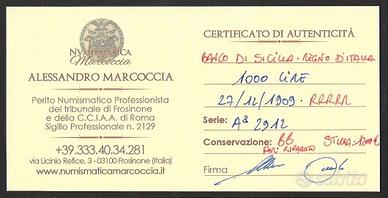 Banconota 1000 lire del Banco di Sicilia 1909, rarissima, restaurata, in conservazione come da foto e con certificato di autenticità. non spedisco . solo ritiro a mano.