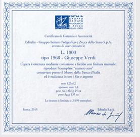 Banconota 1000 Lire Editalia Oro 750 e Argento 999