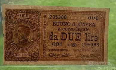 Banconota 2 Lire 1914 seie 001 rarissima periziata