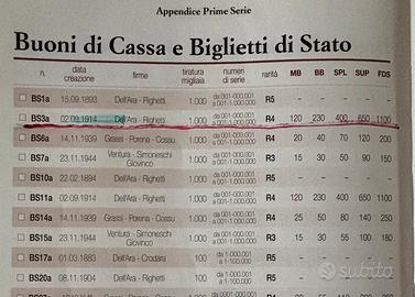 Riferimento: cat. La Cartamoneta Italiana Sezione : appendice prima serie foto 4 e 5 Riga: B63A Buono di cassa da 2 Lire 1914 primissima serie 001 , periziata qspl foto 6 le foto soprattutto quella in controluce mostrano biglietto senza grosse pieghe , che probabilmente ha circolato molto poco (qualche unghiata e un lato leggermente frastagliato) ma deturpato da inchiostro blu , da qui il grado di qspl. Sul fronte leggera sbiaditura. Tutto come fotodocumentato che sono parte integrante dell' annuncio. Rarissima , R4. Stima in spl 400 euro. Possibile sconto con bonifico anticipato.