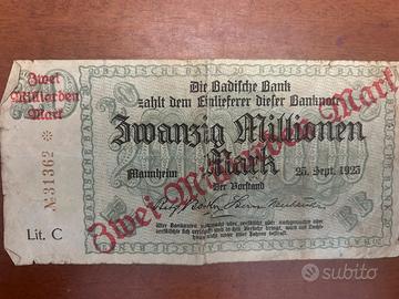 Banconota 2 miliardi di marchi Badische Bank 1923