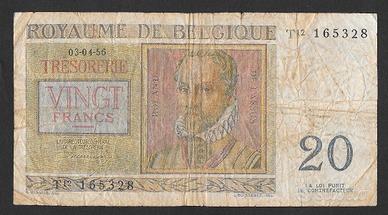 BANCONOTA 20 FRANCHI BELGIO DEL 1956
