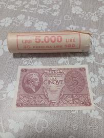 Banconota 5 lire 1944 + rotolino 100 lire 1980
