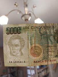 Banconota 5 mila Lire Rara. Tripla A