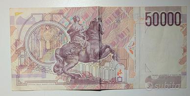 Vendesi banconota autentica da 50.000 Lire, serie "Gian Lorenzo Bernini" (primo tipo, decreto 1984). Un pezzo iconico della storia monetaria italiana prima dell'avvento dell'Euro.