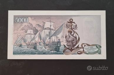 Vendo banconota 5000 lire Colombo / Caravelle perfetta FDS UNC.