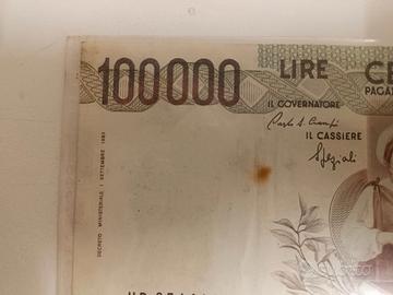 Vendo banconota 100000 Lire Caravaggio Governatore Ciampi Piccolo difetto, ma ancora in ottime condizioni Il prezzo esposto è simbolico Contattare se interessati Primo contatto : via Subito Possibilità di spedizione
