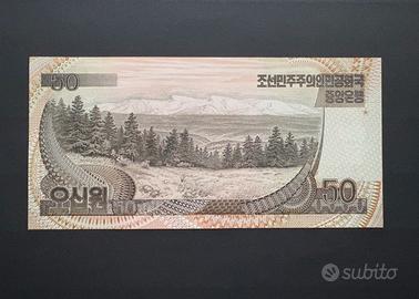 Banconota da 50 won 1992 - Corea del Nord. La banconota è fior di stampa (FDS). Il numero di serie è indicativo in quanto possono essere disponibili più pezzi. Il prezzo dell'oggetto è 9 euro + spedizione. In base alla disponibilità, è possibile l'acquisto di più pezzi, anche con numeri seriali consecutivi. Contattami per ulteriori informazioni.