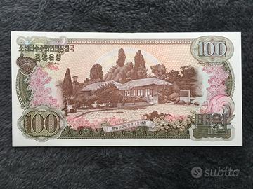 Banconota da 100 won 1978 - Corea del Nord. La banconota è fior di stampa (FDS). Il prezzo dell'oggetto è 14 euro + spedizione. In base alla disponibilità, è possibile l'acquisto di più pezzi, anche con numeri seriali consecutivi. Contattami per ulteriori informazioni.