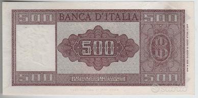 Banconota da 500 lire del 1947, rara, restaurata, in conservazione come da foto.