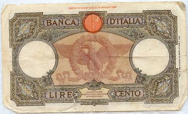 BANCONOTA LIRE 100 ROMA GUERRIERA FASCIO ROMA 11 6 1942 Circolata, usura media uniforme, qualche piega ma integra e leggibile