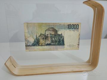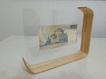 Elegante cornice in legno e plexiglass per esporre una banconota. - Design moderno e minimale. - Materiali: legno e plexiglass. - Ideale per banconote da 10000 Lire Banca d'Italia. Nell' annuncio è compresa anche la banconota (originale) che si vede in foto