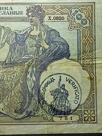 banconota rimessa nuovamente in circolazione nel 1941 recante due timbri ( VERIFICATO), timbrato dall' autorità di occupazione italiana nei territori della Jugoslavia.