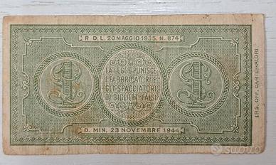 Come da foto vendo per realizzare banconota di UNA LIRA del 1944
