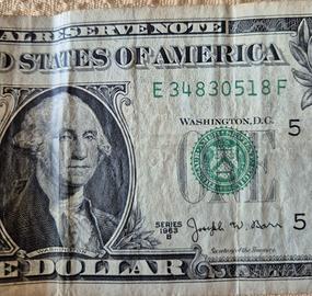 Banconota USA 1 Dollaro Serie 1963-B con firma Joseph Barr โ Rara!
