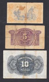 banconote 1-5-10 pesetas Spagna 1935-1937
