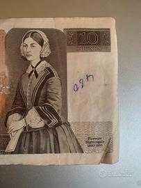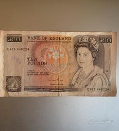 1 banconota 10£ pounds, 1988, Chief Chasier G. M. Gill, fronte Regina Elisabetta II, sfondo rosa antico, retro Florence Nightingale, difetti come da foto particolare, banconota usata, serie EX, prezzo singola banconota 35€