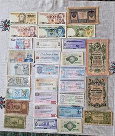 Una bella serie di Banconote Italiane con le famose 1000 Lire Rosa raffigurante la M.Montessori, banconote Polacche nuove , Banconote Russe , Miniassegni Italiani dal 1975 al 1978