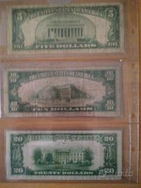 Dollari vari stati USA da 5/10/20 dollari 1929 bollito marrone usato buono stato di conservazione gradita vendita in blocco o singolarmente prezzo poco trattabile da concordare