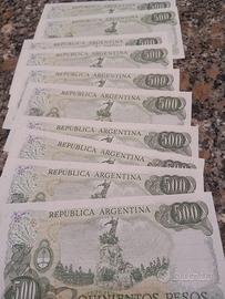blocco di 10 banconote argentine da 500 pesos tutte fior di stampa e numeri progressivi originali cedo a euro 20 il blocco