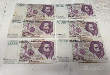 6 banconote da 50.000 lire Bernini tipo 2. Cedo al miglior offerente