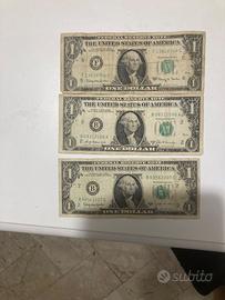 Vendo 3 banconote da 1 dollaro anni 60,valuto proposte d!acquisto.Francesco 3495764089