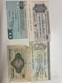 Vendo serie di miniassegni (emessi negli anni '70 per mancanza di monete) e banconote varie. Tutto come da foto