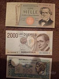 Presenti lire italiane (50.000–100.000–10.000–5.000–2.000–1.000) e franchi francesi di vari tagli.