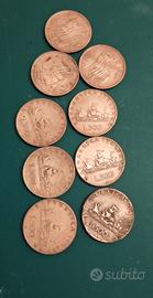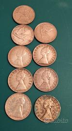 Collezione mista anni ’50–’80. 9× 500 Lire argento (Caravelle + 1861–1961), banconote 500 (Aretusa, Mercurio), 1000 (Verdi, Marco Polo), 2× 5000 Colombo + assegno San Paolo 50 lire. Patina naturale, banconote quasi FDS. Foto fronte/retro su richiesta