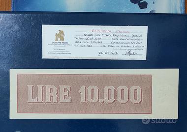 Banconota Italiana Lire 10.000 Titolo Provvisorio, Periziata SPL/SUP - piccolo forellino riparato, molto bella come da foto