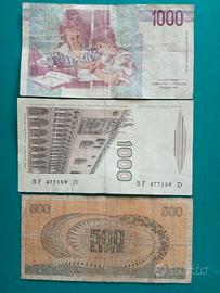 banconote italiane lire 500, 1000.