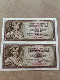 Banconote Jugoslavia 10 Dinara FDS consecutive BH 0392910 BH 0392911 Cosecutive si può vedere anche da foto