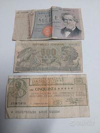 banconote lira da 50000/10000/5000/1000/500/100/50/10/5 certe in buone condizioni e certe no prezzi da concordare