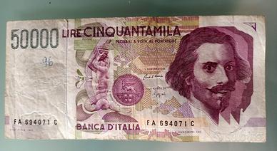 N°1 banconota da cinquantamila lire D.M. 27 Maggio 1992 a 50 euro in buono stato (scritta a penna sul davanti numero 96)