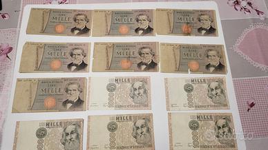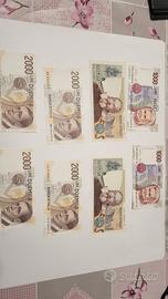 Vendo in blocco al miglior offerente le seguenti banconote: n.1 mille lire - n.5 500 lire Vangelli- n.7 1000 lire Verdi - n.6 1000 lire Polo - n.2 1000 lire Montessori - n.2 2000 lire Galileo - n.4 2000 lire Marconi - n.2 5000 lire Bellini- n.2 5000 lire Cionini - n.1 10000 lire Michelangelo- n.1 10000 lire Volta