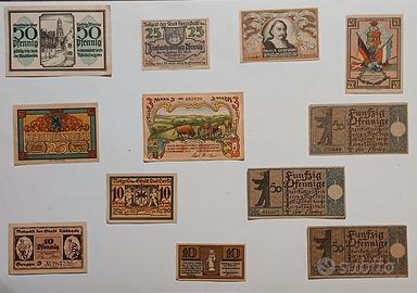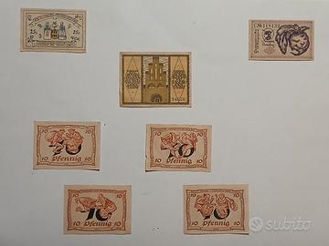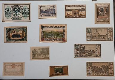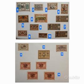 Notgeld/Serienscheine: monetazione di emergenza e necessità, guerra ed iperinflazione. Nel lotto sono presenti 3 pezzi qualificati come rari [R2], tutte le "banconote" sono autentiche ed in condizioni assolutamente perfette in fior di stampa [FdS], ad eccezione di 3 biglietti qualificati come quasi fior di stampa[qFdS]: