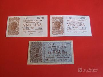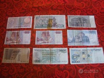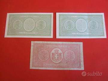 Tre banconote rare del Regno d'Italia, in ottimo stato, come da foto: due biglietti da UNA LIRA con numeri di serie progressivi e un BUONO di CASSA DA UNA LIRA. Più le seguenti banconote: 10000 lire italiane Volta - 5000 lire italiane Colombo - 4 carte da mille italiane (Verdi, Marco Polo e due Montessori) - 500 lire Mercurio - 1000 Zlotych polacchi e 5000 Zlotych polacchi. TUTTO A 70 Euro. Gradito contatto telefonico o Whatsapp al 3487146039. Inserzionista con 100% Feedback positivi su altre piattaforme. Si astengano i perditempo perchè non avranno risposta. Questa è una vendita tra privati, con esclusione di garanzia e con la formula "visto e piaciuto". L'oggetto è venduto "così com'è" e non è prevista nessuna restituzione.