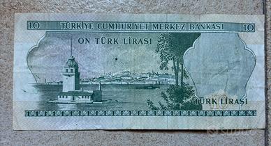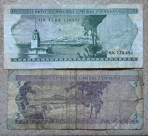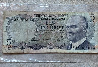 Turche, in particolare un esemplare della serie emessa dalla Türkiye Cumhuriyet Merkez Bankasi (Banca Centrale della