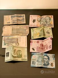 Piccola collezione di banconote di circa 20 paesi, alcune fuori uso come quella croata e il dinaro del kuwait. Alcune in discrete condizioni, altre in ottime; honduras, argentina, chile, brasile, croazia , kuwait, cina, korea, hong kong, singapore, polonia, messico, madagascar, romania, indonesia, arabia saudita, egitto, turchia, australia, sud africa, malesia, usa, serbia. Resto a disposizione per altre foto e info. Vendo tutto in lotto, non separatamente! Grazie
