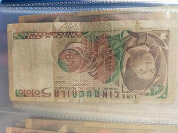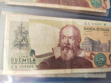 Vendo : - 18 banconote da 2000 lire raffigurante Galileo Galilei - 21 banconote 2000 lire raffigurante Marco Polo - 5 banconote da 1000 lire raffigurante Giuseppe Verdi - 1 banconota da 5000 lire raffigurante Antonello da Messina - 1 banconota da 10.000 lire Ritratto d'uomo del Castagno - 1 banconota da 50000 lire raffigurante Volto di donna - 1 banconota da 500 lire raffigurante la Testa di Mercurio - 1 banconota da 500 lire Aretusa - 1 banconota da 10 lire raffigurante VITTORIO EMANUELE III FASCIO 1939 XVIII - 1 banconota da 100000 lire raffigurante la Venere di Botticelli 145 euro