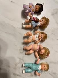 Bandai Tiny blessing doll vintage 1987 bamboline di 7/8 centimetri con braccia e gambe articolate : in ordine di foto trovi Lee Ann cinese con tutina viola, Sarah con biberon e bambolina Baby Michael con maglietta e pannolino, Katherine con mutandine e top rosa , infine kris con tutina verde acqua. Vendo in blocco a 50 euro oppure ad euro 12 l’uno più spedizione