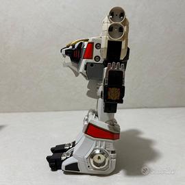 Robot vintage White Tigerzord MIghty Morphin Power Rangers anni 90 della Bandai. Altezza circa 25/30cm. Incluso solo ciò che è visibile in foto. Presenti segni di usura. Tutto in condizioni come da foto. Per altre info o foto chiedere pure. Da segnalare vano batterie con segni di corrosione. Batterie usate per il test non incluse. Luce sul petto funzionante con anche effetti sonori, azionabile dal tastino nero destro. tastino sinistro sembra non funzionare. Parti mancanti.
