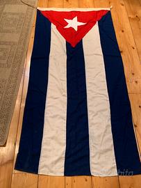 Bandiera utilizzata presso l’ambasciata cubana in italia , durante gli anni 90 , in robusto cotone rinforzato e trattato per l’esposizione all’esterno , integra senza strappi o fori , misure 140 x 70 .