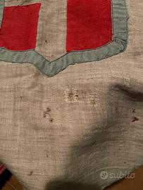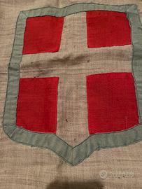 Bandiera completa Sabauda completa di asta e piedistallo, la bandiera riporta varie cuciture dell’epoca,non spedisco.