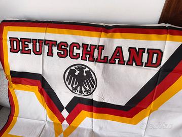 Vendo bandiera della Germania, dimensioni 97 x 130 cm circa, poliestere, con tasca laterale per asta (non inclusa) nuova, mai usata.