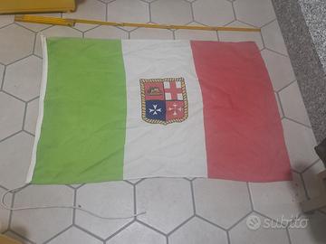 Bandiera della Marina Mercantile Italiana, con stemma. - Tricolore verde, bianco e rosso. - Stemma centrale con scudo. - Cordino per fissaggio.