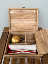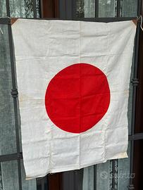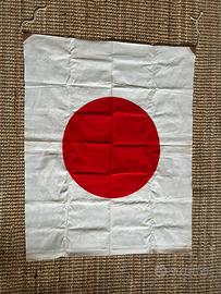 Bandiera giapponese della seconda guerra mondiale. Molto rara. Bandiera d’onore HINOMARU. Scatola in legno con incisa sulla targhetta le festività in cui bisognava esporre la bandiera. La palla (dal peso di 100 gr) veniva posta all’estremità dall’asta portabandiera per evitare che si sfili da quest’ultima. Diemsioni bandiera 87 x 70 cm Diemnsioni scatola 22,5x16,5x9 cm Acquistata in Giappone. Disponibili altre foto.