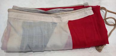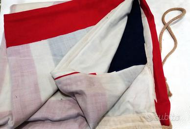 Bandiera di cortesia militare in cotone di dimensioni mt. 4 x 2 , produzione tedesca, in ottimo stato, solo leggermente ombrata. La prima foto la mostra issata insieme ad una francese di mt. 3 x 2 in vendita a parte,